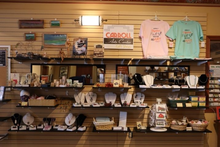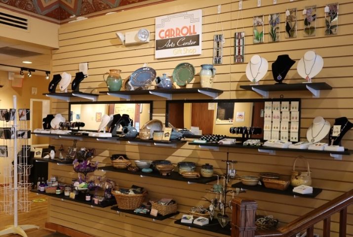 The Arts Center’s lobby is a treasure trove of art gifts and fine craft items handmade by talented local and regional artists. The Gift Shop offers a rotating selection of jewelry, pottery, scarves, glass, notecards, and more for sale in a range of prices and variety of styles. We also carry books by local authors and fun souvenirs to show off your love of the arts.
