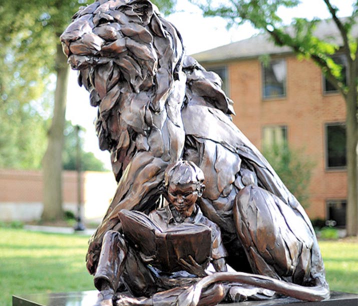 - “Wild Imaginings,” a bronze sculpture by Bart Walter that features a small boy reading while leaning against a lion of his imagination. (2010)