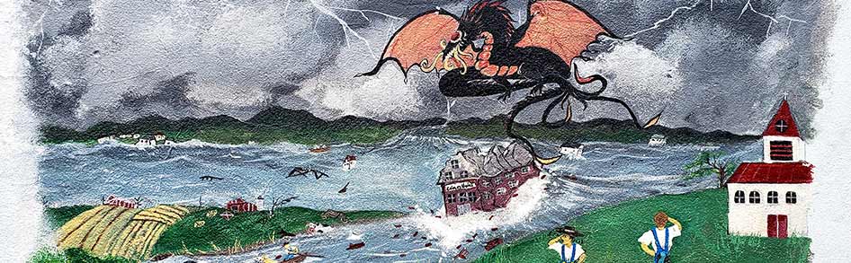 The 10 murals are a collaboration by 10 local artists on private and town wall and floors about the mythical Snallygaster, a dragon-like creature in American folklore that allegedly inhabits the Central Maryland and Washington, D.C., area. (2018)