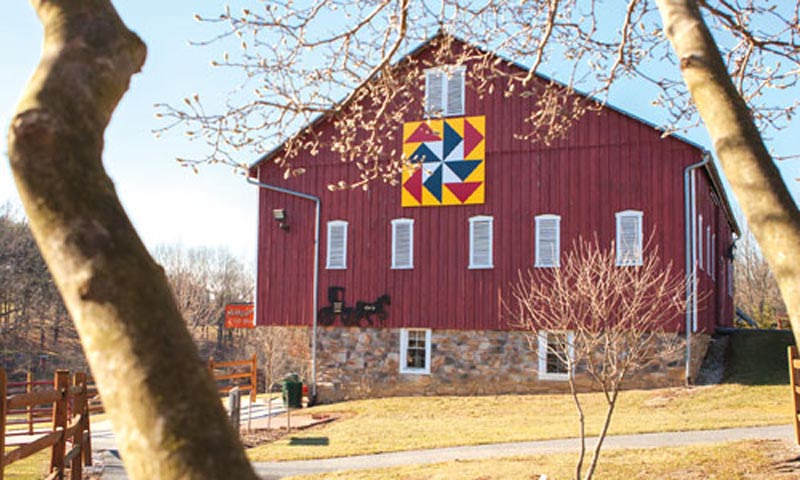 The program pays homage to Carroll’s agrarian history by installing 8-foot square quilt blocks on scenic barns throughout the county. The barn quilt tradition actually dates back many years when farmers used to paint Pennsylvania Dutch hex signs and other folk art designs on their barns.
