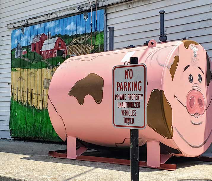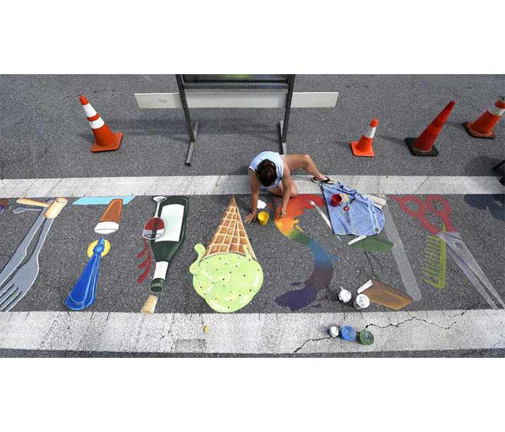 The nonprofit Downtown Sykesville Connection has turned urban fixtures into public art pieces with the Urban Transformation project. Vivian Davis and Robin Culkin painted the crosswalk at the intersection of Oklahoma Avenue and Baldwin Drive in Sykesville. The crosswalk art spells out “Sykesville” using different images that depicts different aspects of the town. For example, the “E” is composed of books, representing the nearby A Likely Story Bookstore.